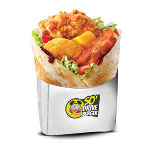 Pain Wrap 🥙, Sauce barbecue-mayo, Filet de poulet 🍗, Fromage 🧀, Galette pomme de terre 🥔, Bacon 🥓, Tomates 🍅, Salade 🥬