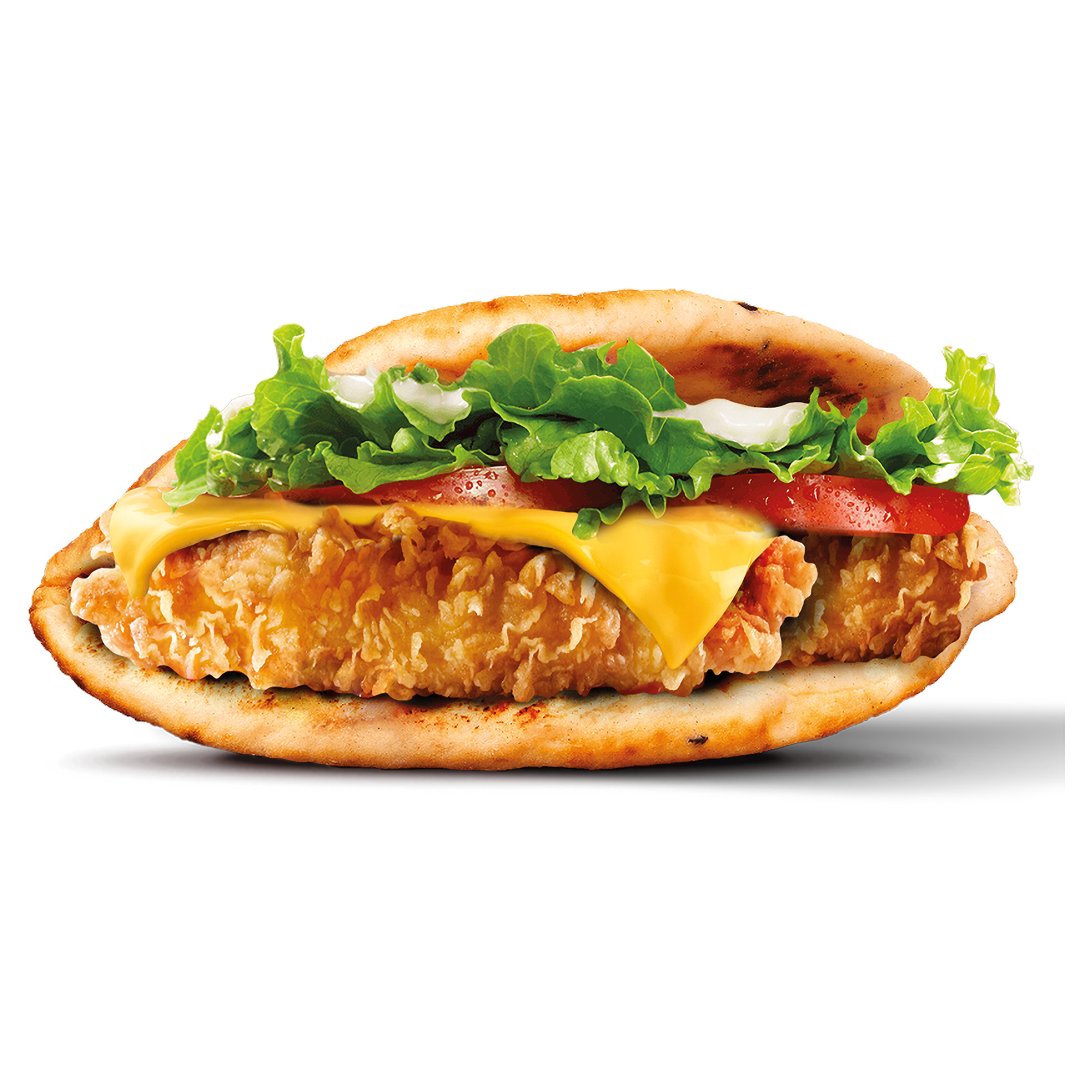Pain naan 🫓, Filet de poulet 🍗, Sauce mayo, Double fromages 🧀🧀, Salade 🥬, Tomates 🍅