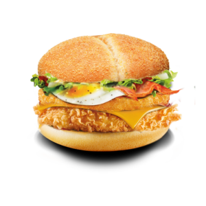 Pain King 🥯,Filet de poulet 🍗, Sauce mayo-bbq 🧂, Double fromages 🧀🧀, Bacon 🥓, Oeuf 🍳, Galette pomme de terre 🥔, Tomates 🍅, Salade 🥬