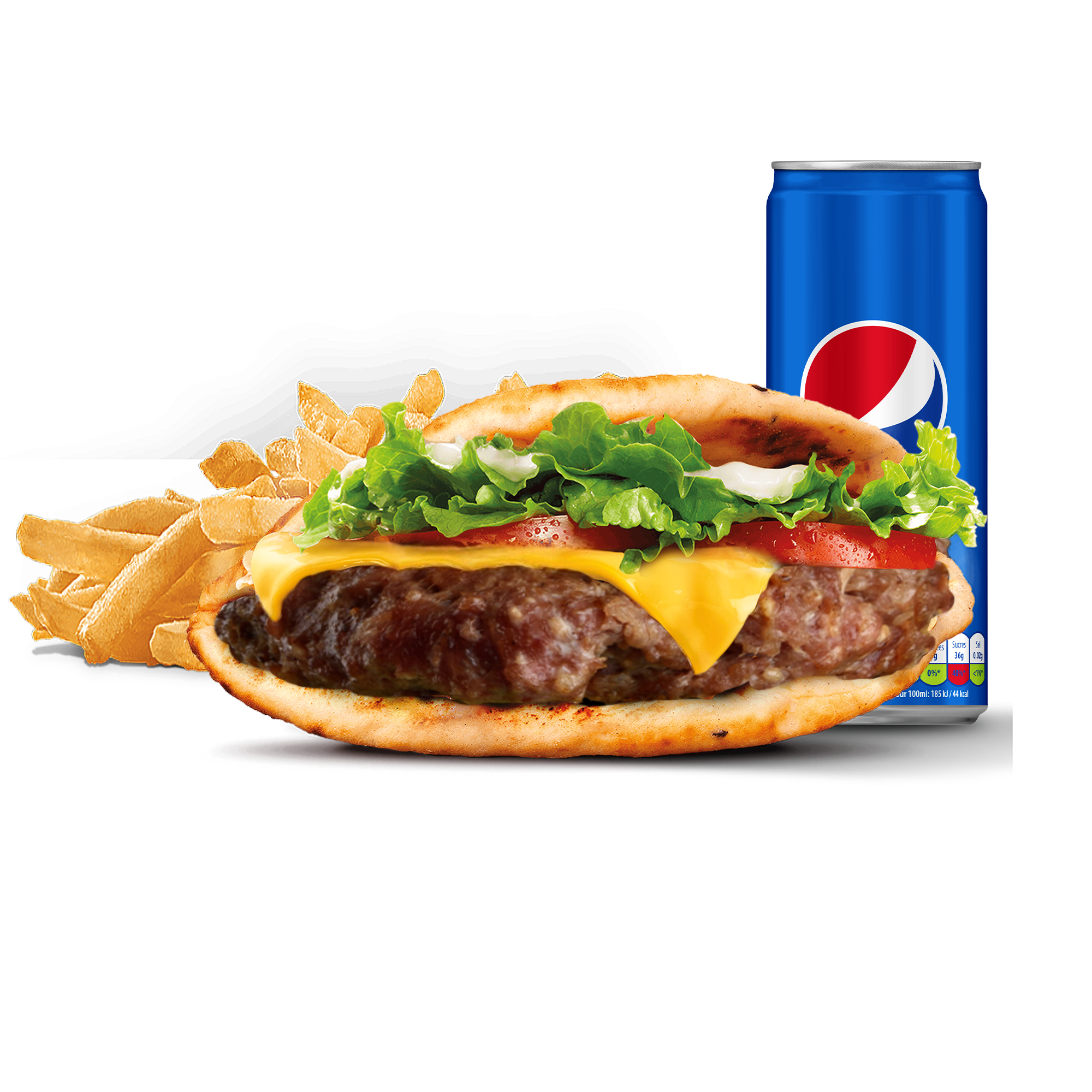 Pain Mega Bun 🥯, 🥩🥩 4 steaks 90g 🥩🥩, 🧀🧀 4 fromages 🧀🧀, Sauce giant, Oignons 🧅, Salade 🥬, Cornichons.