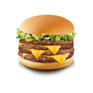 Pain Gourmet 🥯, Sauce fromagère 🧀, Triple steaks 45g 🥩🥩🥩, Triple fromages 🧀🧀🧀, Oignons 🧅, Salade 🥬