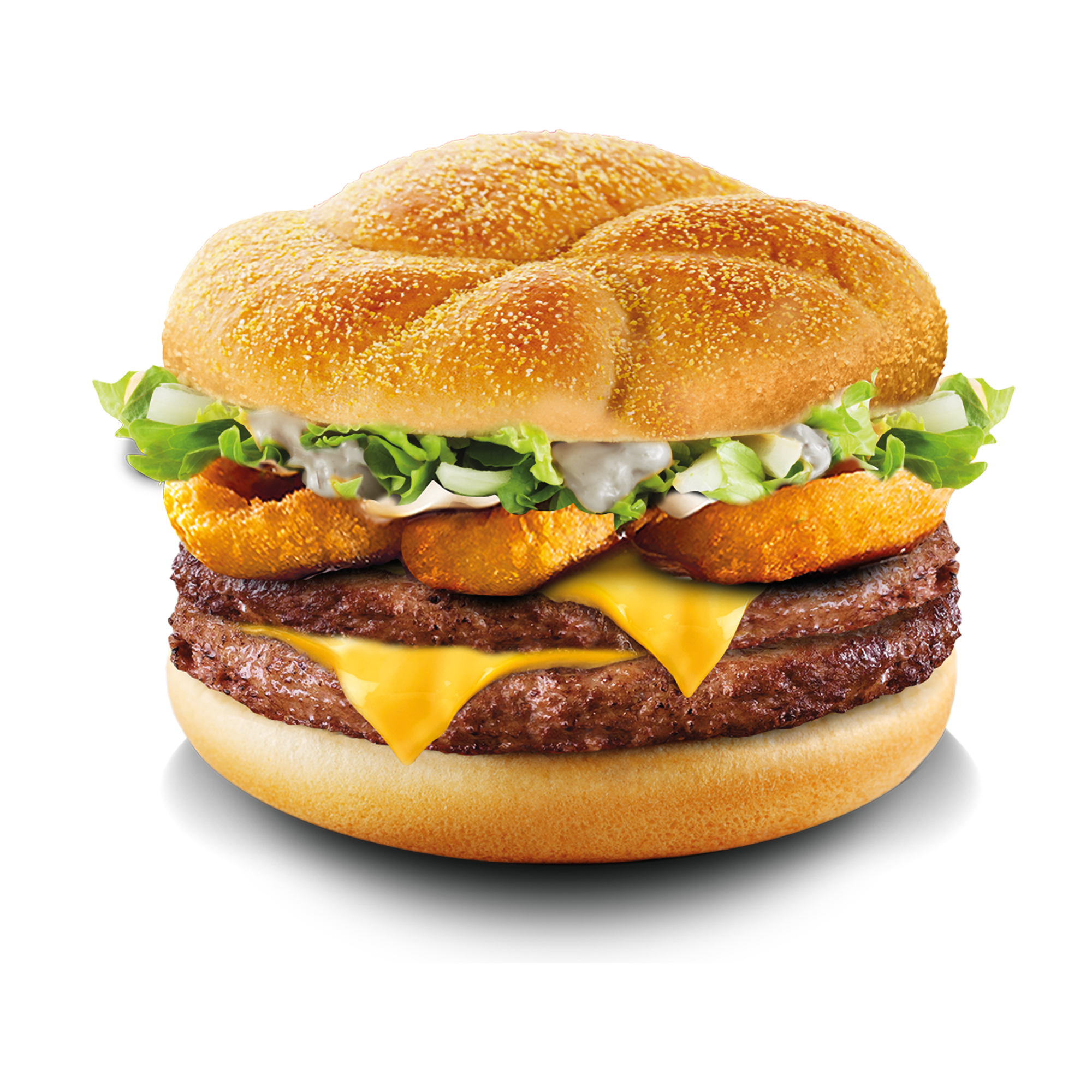 Pain Double-cut 🥯,Double steaks 45G🥩🥩, Sauce Ronald 🤡, Fromage 🧀, Oignons 🧅, Salade 🥬, Cornichons