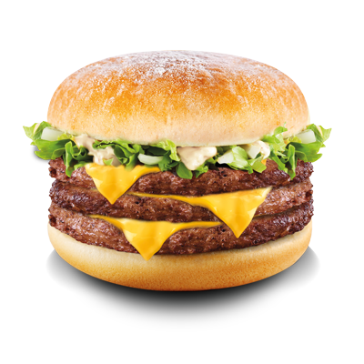 Pain Gourmet 🥯, Sauce fromagère 🧀, Triple steaks 90g 🥩🥩🥩, Triple fromages 🧀🧀🧀, Oignons 🧅, Salade 🥬
