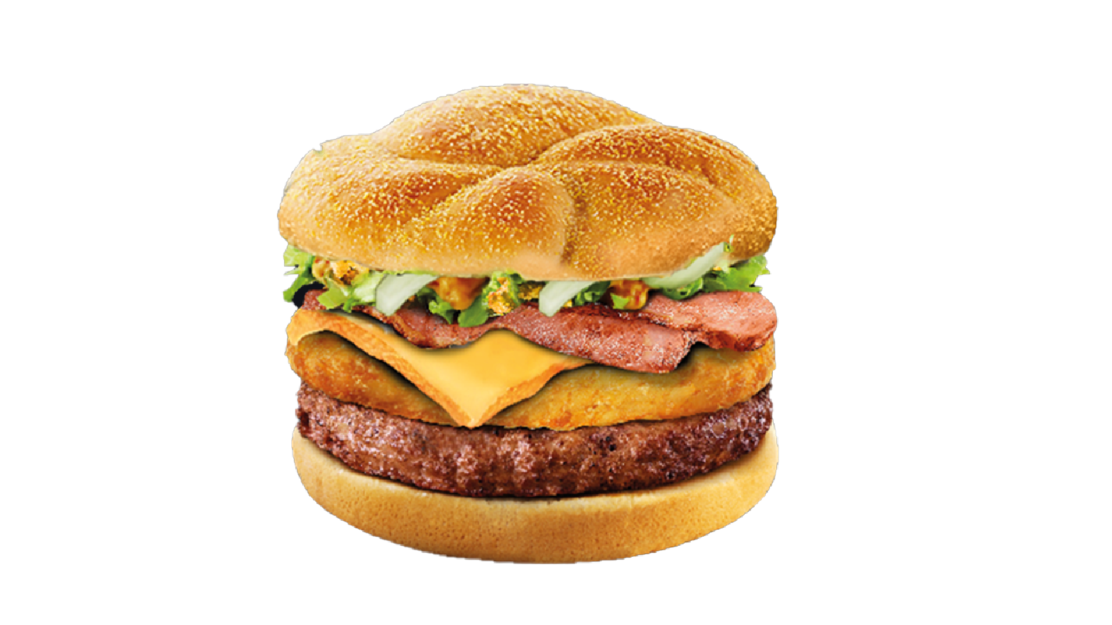 Pain King 🥯,Filet de poulet 🍗, Sauce mayo-bbq 🧂, Double fromages 🧀🧀, Bacon 🥓, Oeuf 🍳, Galette pomme de terre 🥔, Tomates 🍅, Salade 🥬